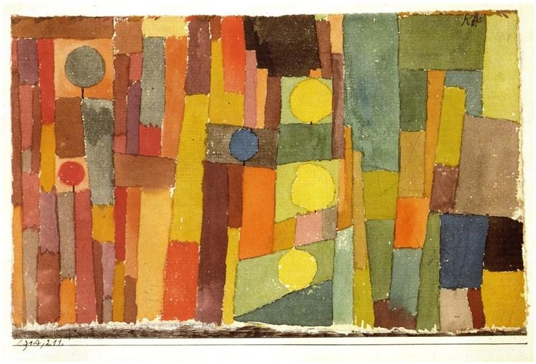 Paul Klee, In the Style of Kairouan (1914) After his return from Tunisia, Klee produced his first purely abstract piece, In the Style of Kairouan. Klee's career was put on hold after he was conscripted into World War I, first working as a soldier on the front, then moving to work for the aircraft maintenance company. After being transferred to work as a clerk at the Royal Bavarian flying school, he was able to continue painting. Even during the war Klee was able to exhibit his work, to much critical acclaim.